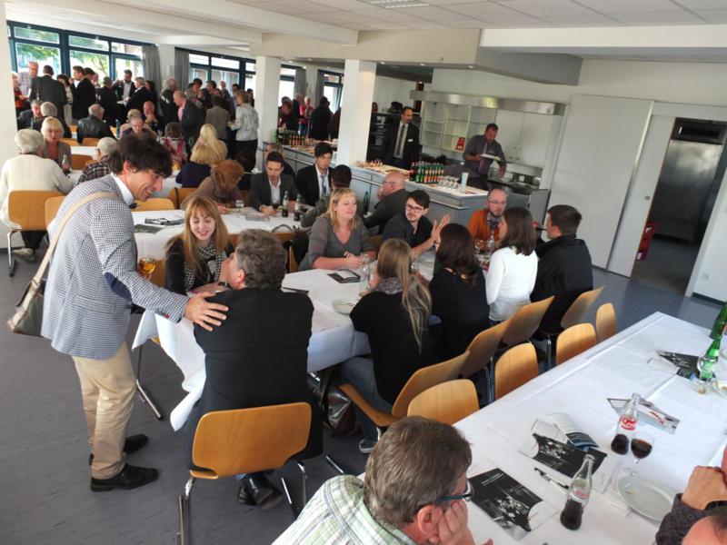 Stehempfang in der Cafeteria des Grenzdurchgangslagers Friedland