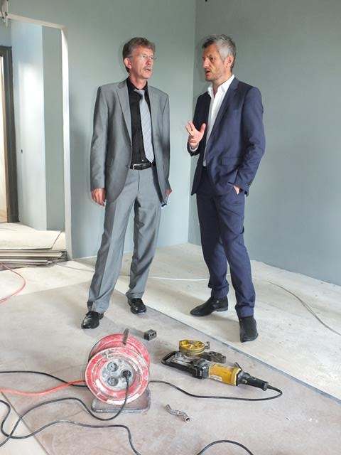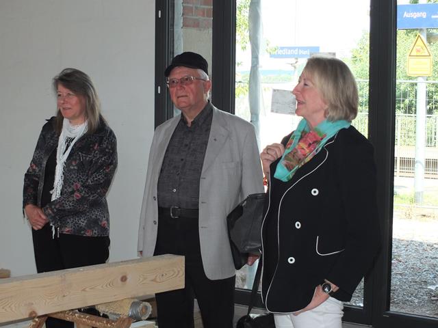 v.r.n.l. Kuratoriumsmitglieder Heidrun Böttger und Propst a.D Klaus Funke informieren sich über den Stand der Bauarbeiten im historischen Bahnhofsgebäude