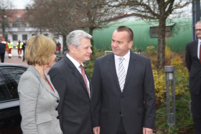 Begrüßt wurde Bundespräsident Joachim Gauck vom niedersächsischen Innenminister Boris Pistorius, dem Landrat des Landkreises Göttingen Bernhard Reuter sowie dem Bürgermeister der Gemeinde Friedland Andreas Friedrichs.