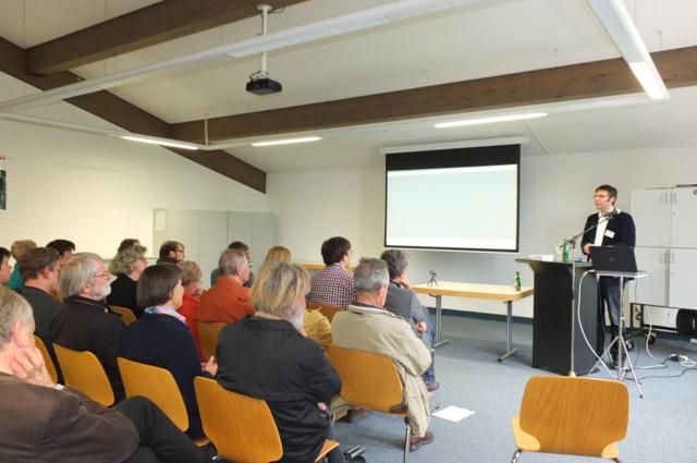 Der Leiter des wissenschaftlichen Aufbauteams Dr. Joachim Baur stellt Bewohnerinnen und Bewohnern der Gemeinde Friedland das Museumskonzept vor.