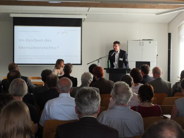 Die Tagung „Im Zeichen der Menschenrechte?“ war die zweite Veranstaltung der Reihe „Friedländer Gespräche“. Im Dialog mit Wissenschaftlern, Experten, Multiplikatoren und weiteren Interessierten und im Blick auf das zukünftige Museum Friedland wurden thematische Facetten des historischen Ortes des Grenzdurchgangslagers und der dort geplanten Dauerausstellung vertieft.