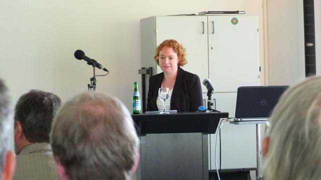 Dr. Lorraine Bluche vom wissenschaftlicher Aufbaustab Museum Friedland zum Thema "Internationale Flüchtlinge als Thema des Museums Friedland"