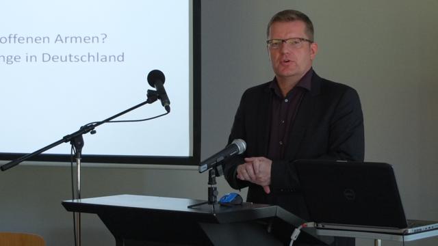 Dr. Olaf Kleist, Humboldt-Universität zu Berlin, zum Thema "Vom Asyl zum Resettlement? Flüchtlingsschutz und andere Interessen"