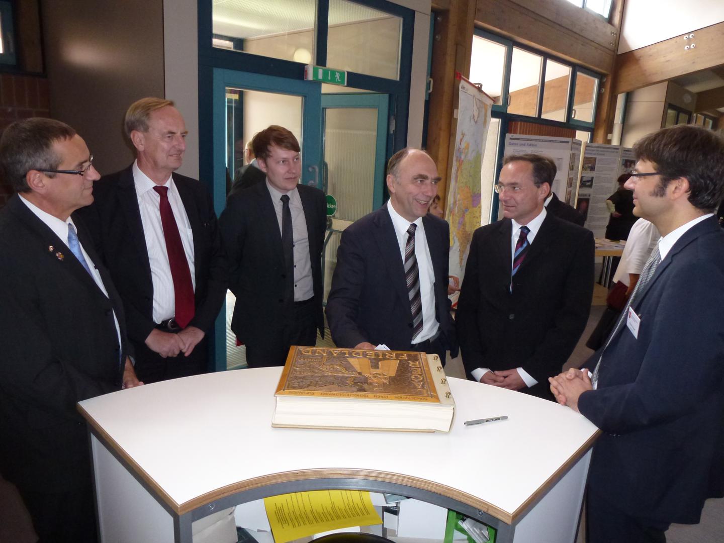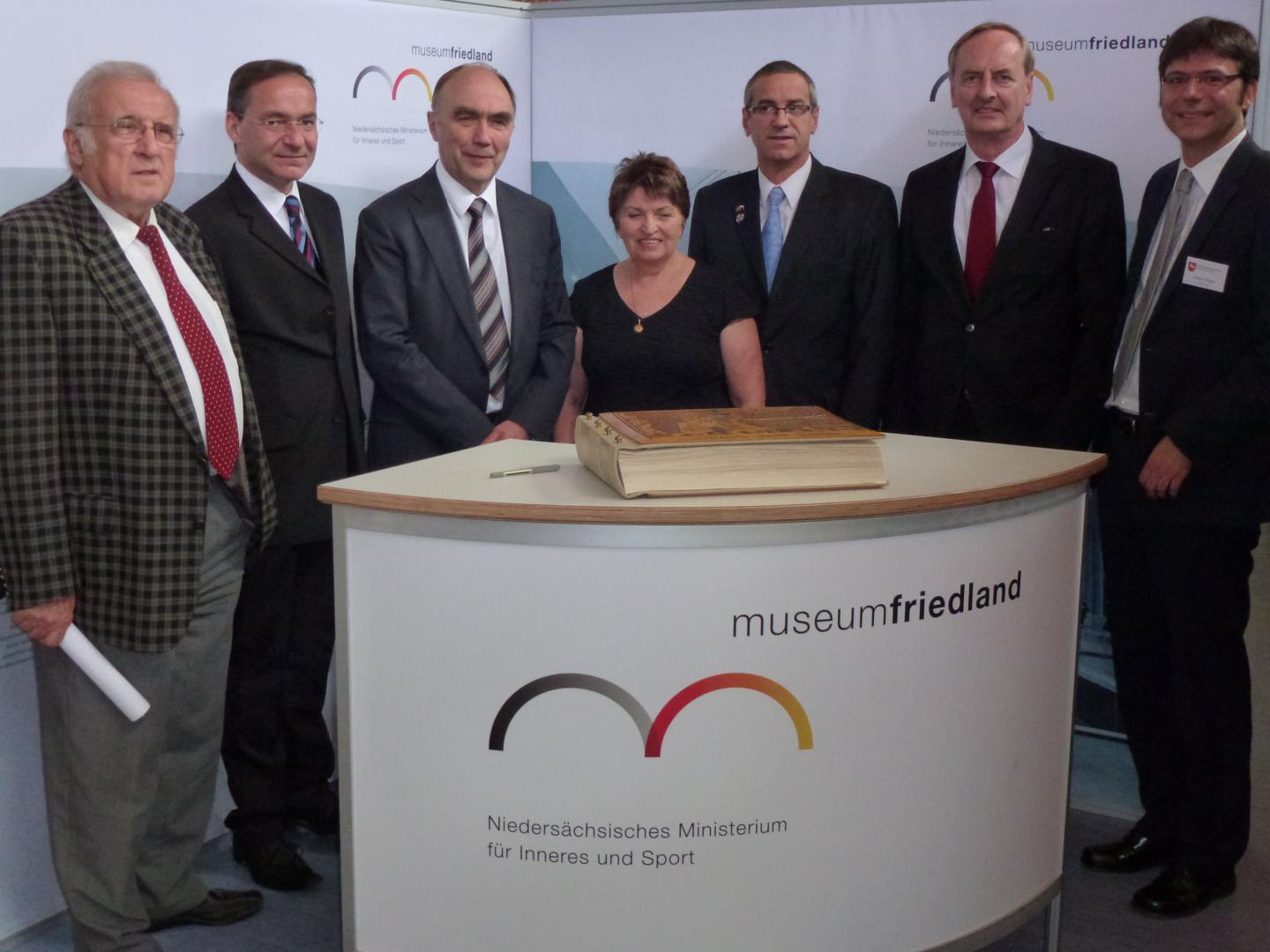 v. l. n. r.: Adolf Fetsch (Bundesvors. der Landsmannschaft), Oliver Dix (Landesvors. BdV), Dr. Christoph Bergner (Parl. Staatssekretär), Lilli Bischhoff (Landesvors.), Andreas Friedrichs (Bürgermeister), Rudolf Götz (MdL), Oliver Krüger (Projektl.)