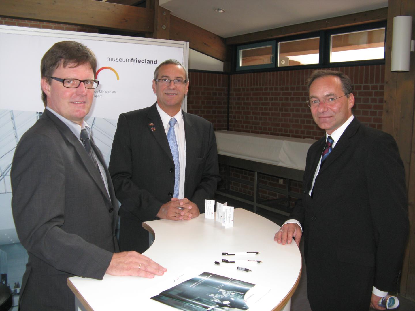 v. l. n. r.: Jürgen Fröhlich (Projektleitung Museum Friedland), Andreas Friedrichs (Bürgermeister), Oliver Dix (Vorsitzender der Landesgruppe Niedersachsen des BdV).